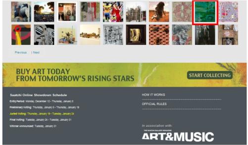 Die folgenden Bilder sind bei den vergangenen Saatchi Showdown Runden unter die 50 Favoriten gewählt worden